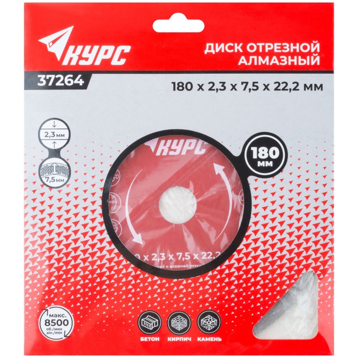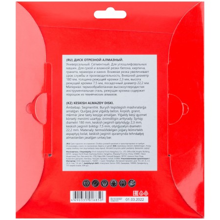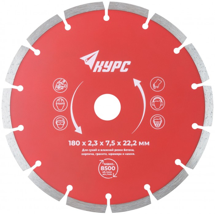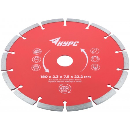 Диск отрезной алмазный сегментный (сухая и влажная резка) 180х2,3х7,5х22,2 мм (37264)