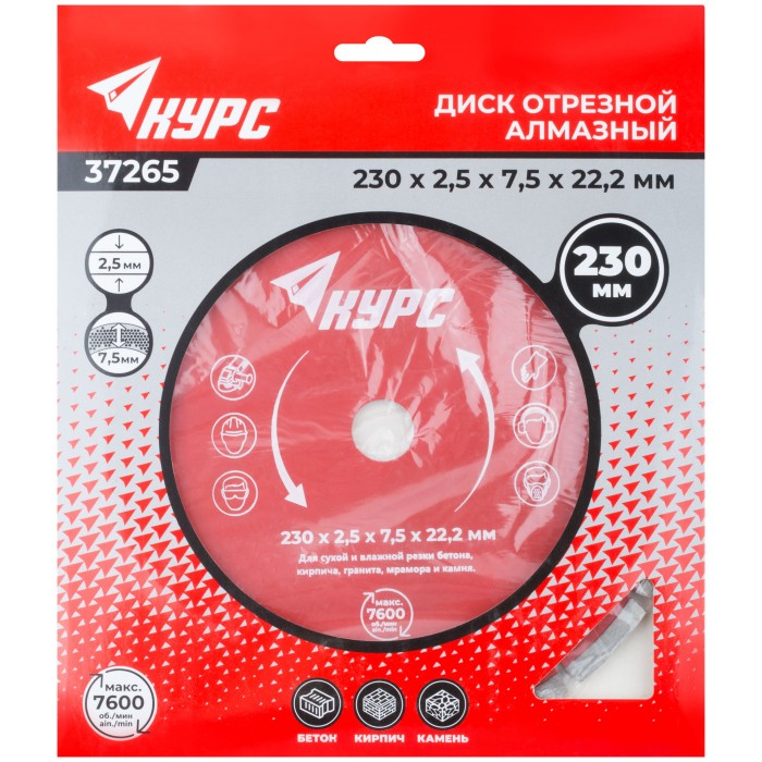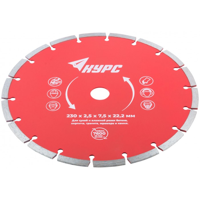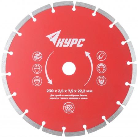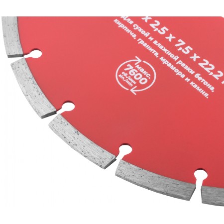 Диск отрезной алмазный сегментный (сухая и влажная резка) 230х2,5х7,5х22,2 мм (37265)
