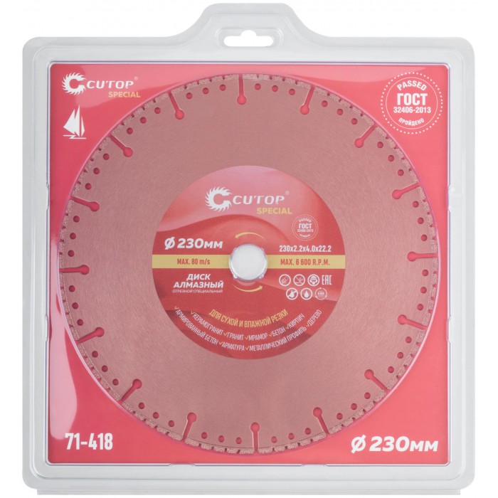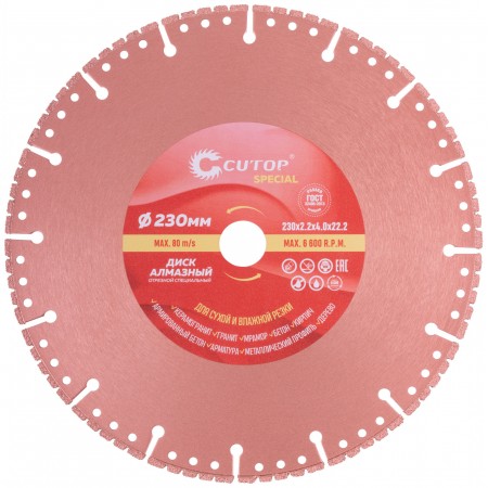 Диск отрезной алмазный специальный по металлу Cutop Special, 230 x 2,2 x 22,2 мм (71-418)
