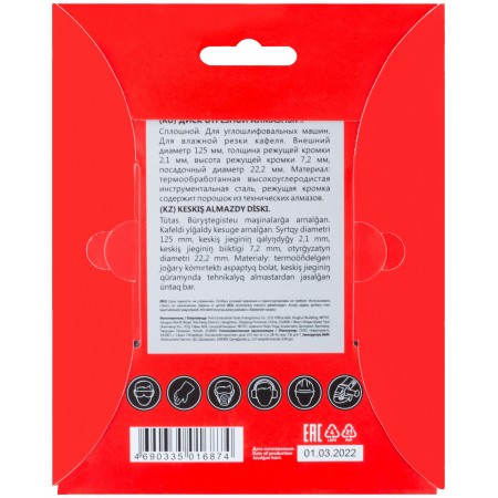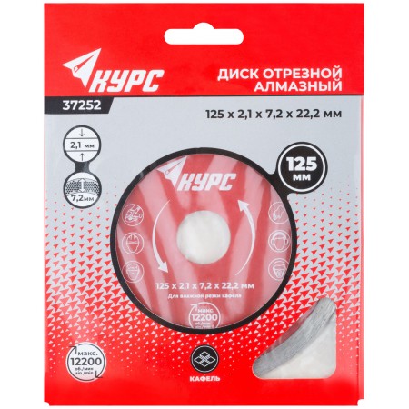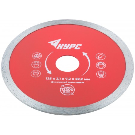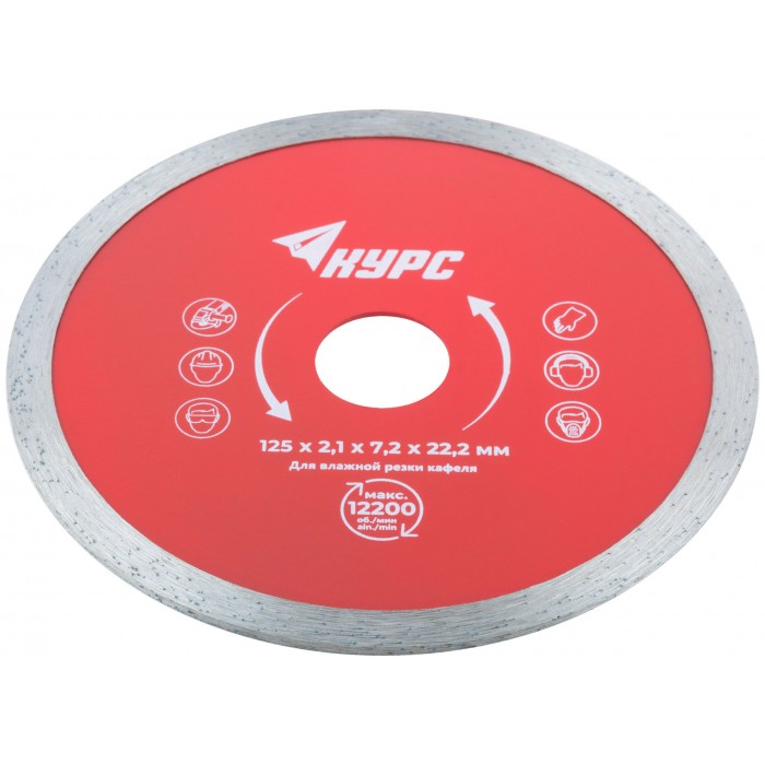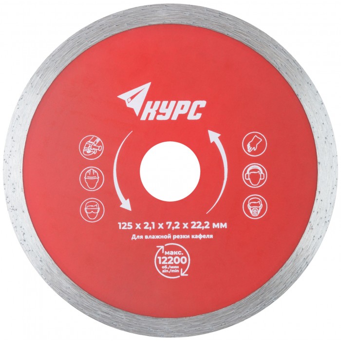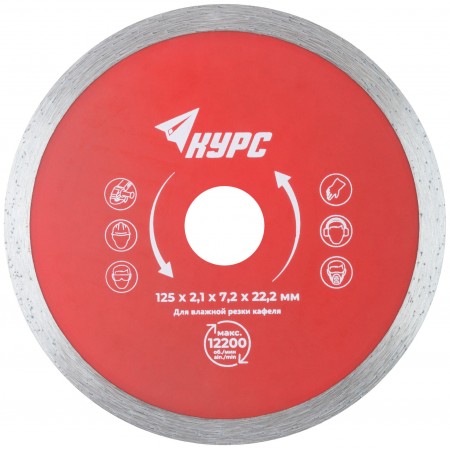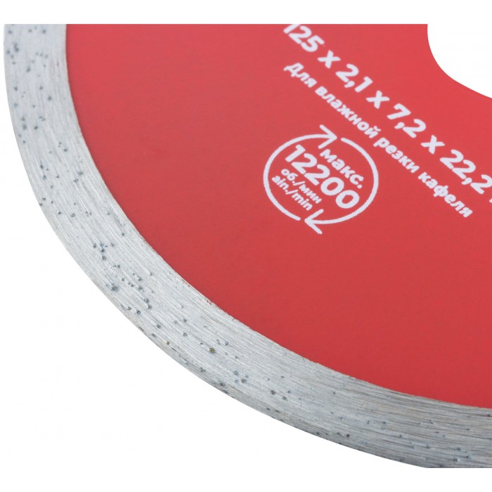 Диск отрезной алмазный сплошной (влажная резка), для работы с кафелем, 125х2,1х7,2х22,2 мм (37252)