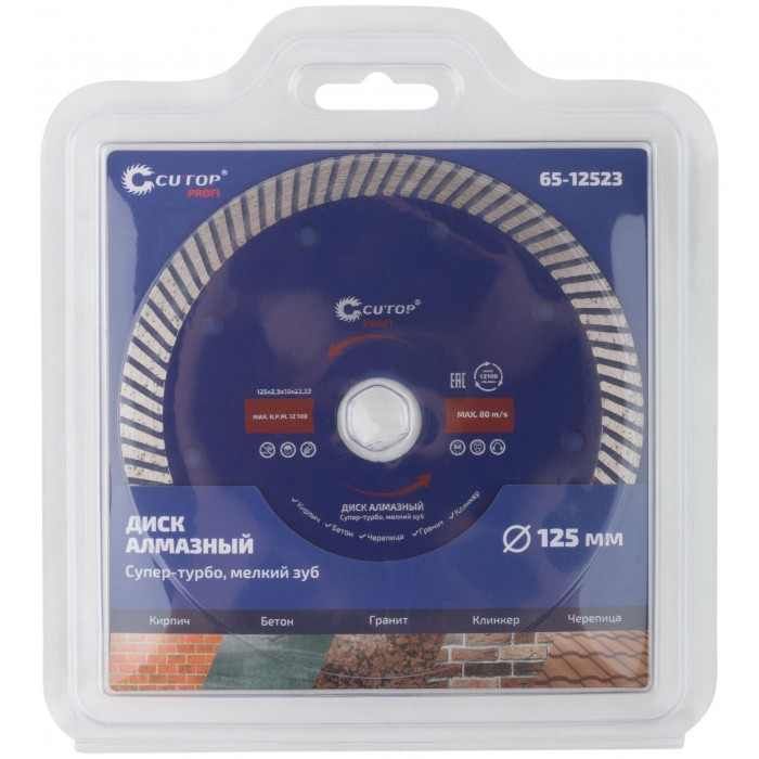 Диск отрезной алмазный сверхтонкий, супер-турбо, мелкий зуб CUTOP, 125 x 2.3 x 10 x 22.2 мм (65-12523)
