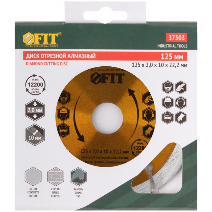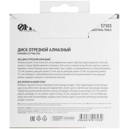 Диск отрезной алмазный "Турбо-крупный зуб" (сухая и влажная резка) 125х2,0х10х22,2 мм (37503)