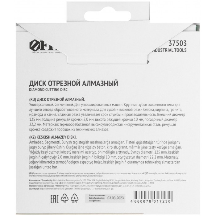 «Турбо». Универсальный. Для сухой и влажной резки бетона, кирпича, гранита, мрамора и камня. Крупный зуб, продлевающий срок службы. Посадочный диаметр 22,2 мм. Материал: термообработанная инструментальная сталь, режущая кромка содержит порошок из технических алмазов. Упаковка: картонный конверт.