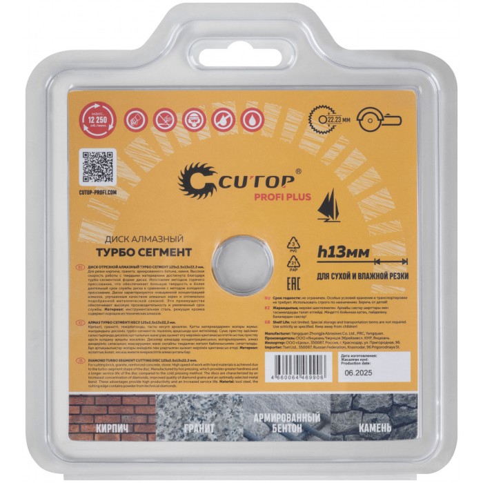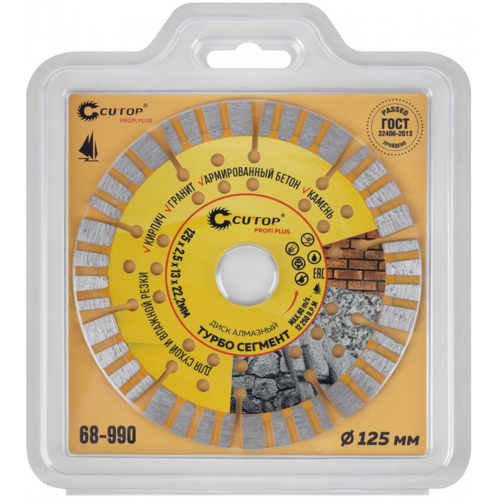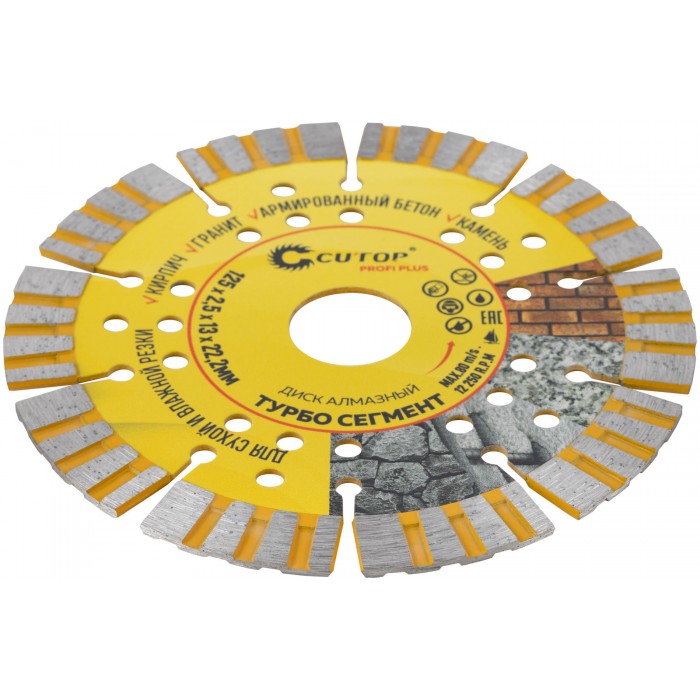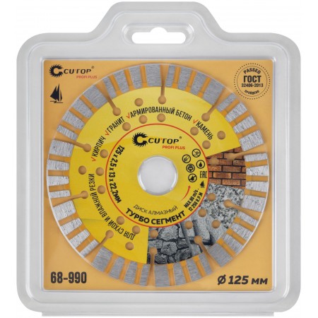 Диск отрезной алмазный "Турбо Сегмент", CUTOP profi plus, 125х2,5х13х22,2мм (68-990)