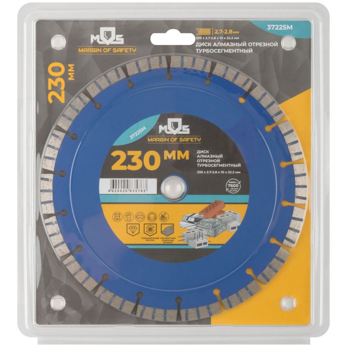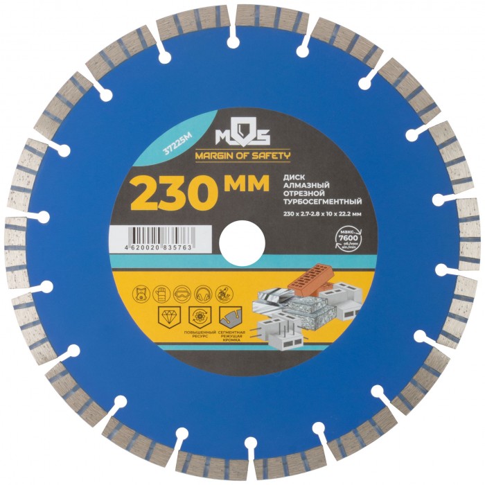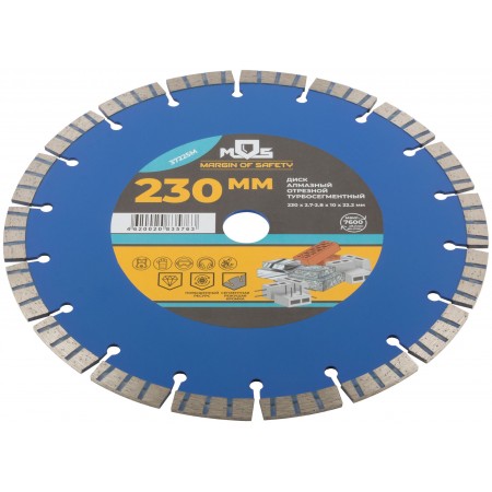 Диск отрезной алмазный турбо-сегментный, 230 x 2,7-2,8 x 10 x 22.2 мм (37225М)