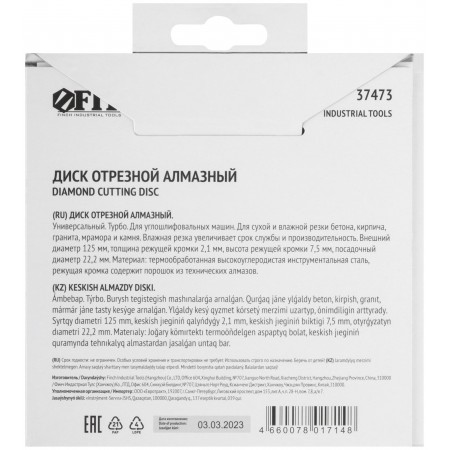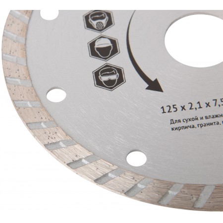 Диск отрезной алмазный "турбо" (сухая и влажная резка) 125х2,1/2,2х7,5х22,2 мм (37473)