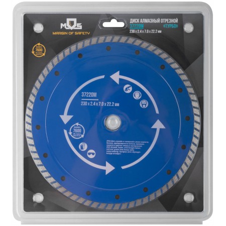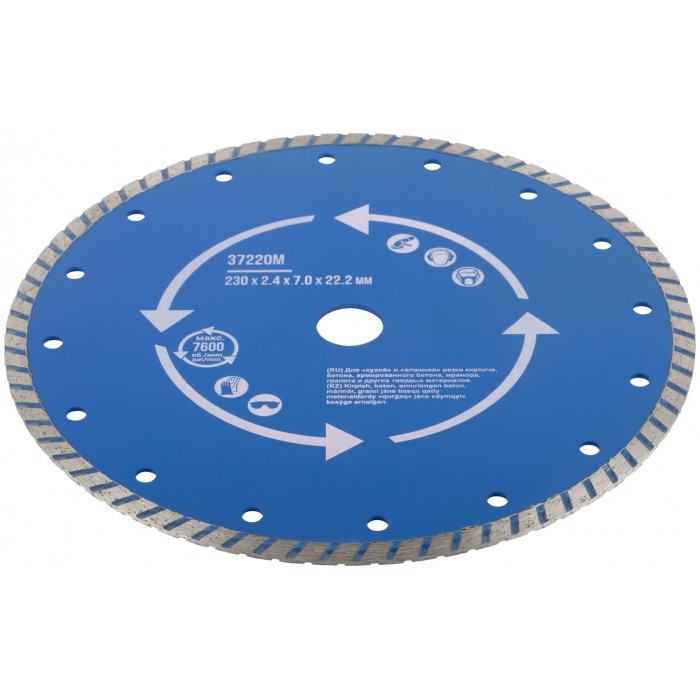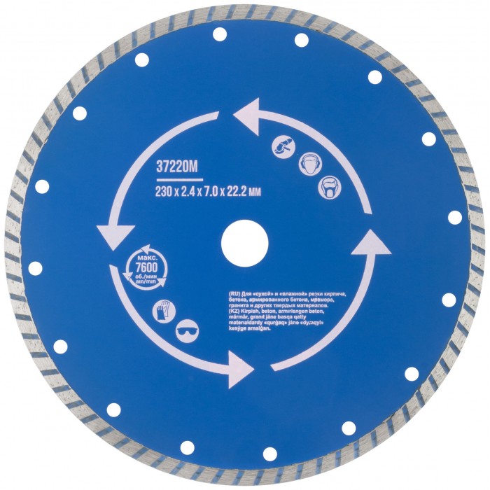 Диск отрезной алмазный "турбо" (сухая и влажная резка) 230 х 2,4 х 7 х 22,2 мм (37220М)