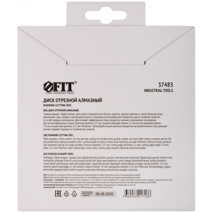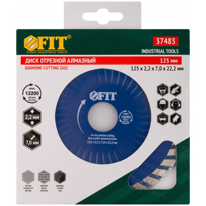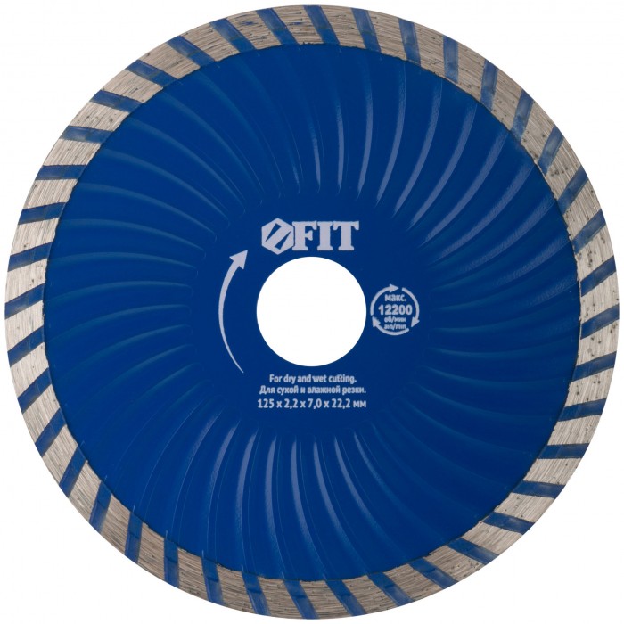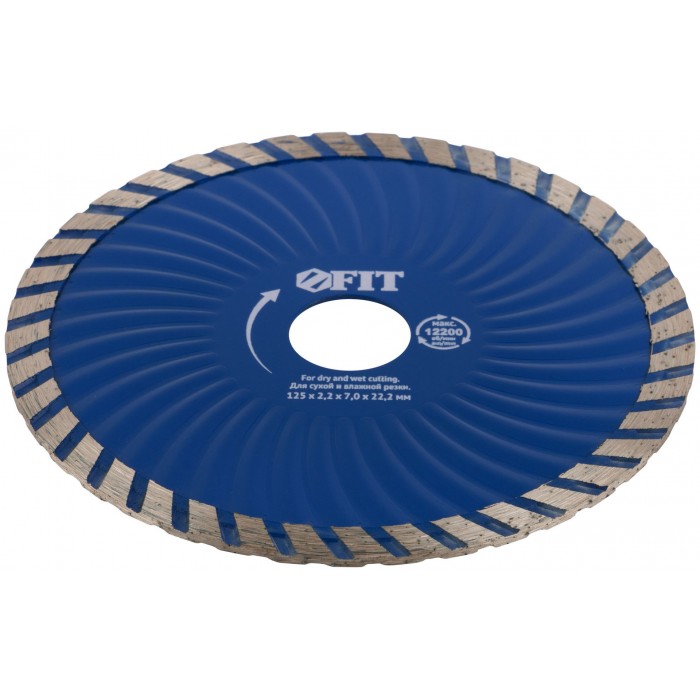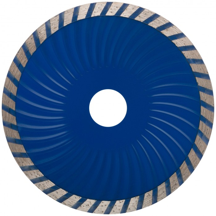 «Турбо-волна». Универсальный, усиленный, для глубокой сухой и влажной резки. Применяется для резки особо твёрдых материалов: бетона, кирпича, гранита, мрамора, камня. Посадочный диаметр 22,2 мм. Материал: высококачественная инструментальная сталь, режущая кромка содержит порошок из технических алмазов. Упаковка: картонный конверт.