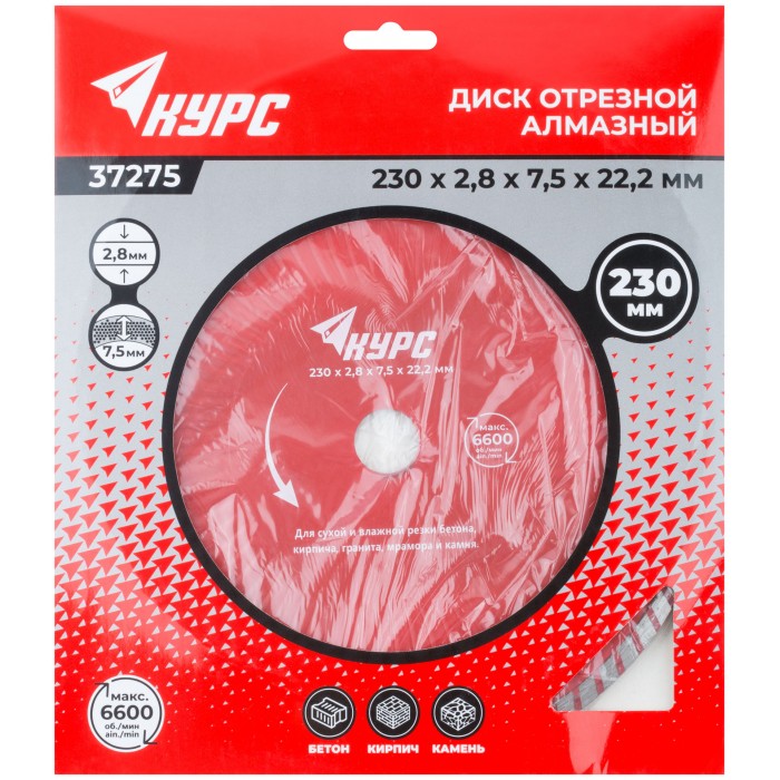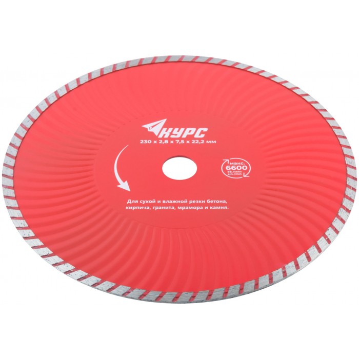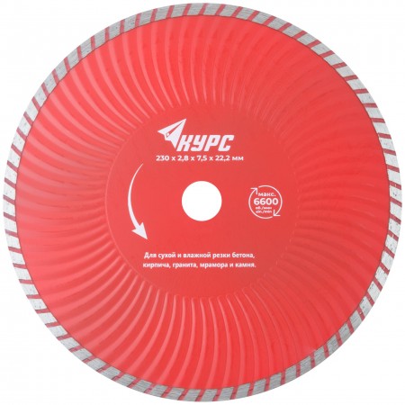 Диск отрезной алмазный "Турбо-волна" (сухая и влажная резка) 230х2,8х7,5х22,2 мм (37275)
