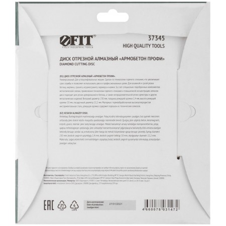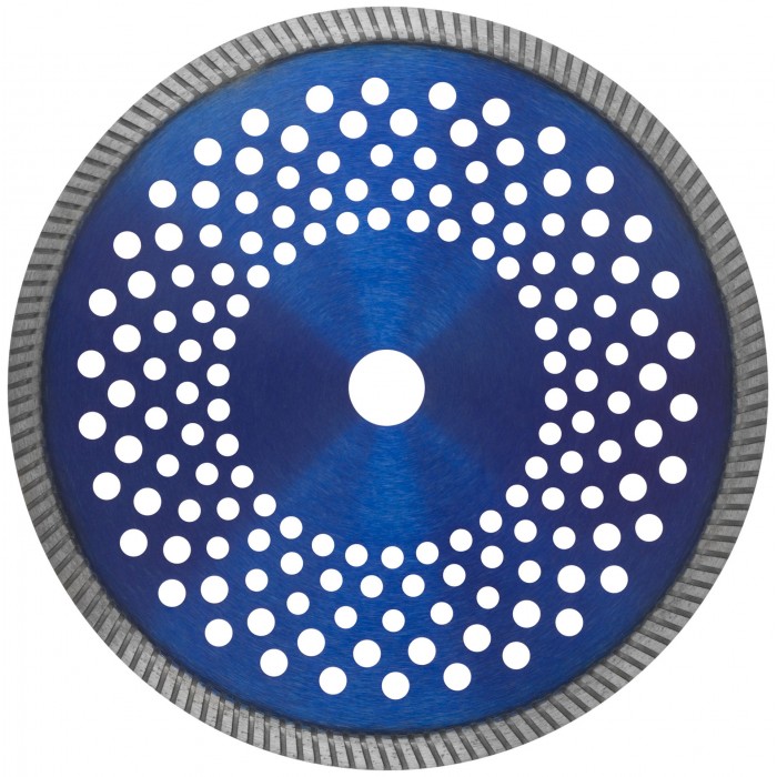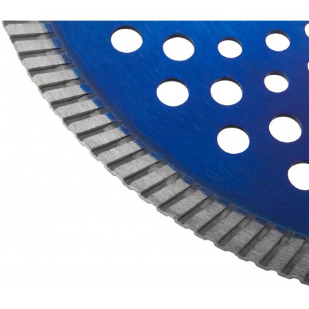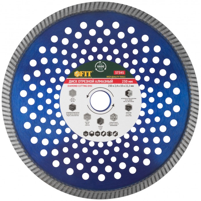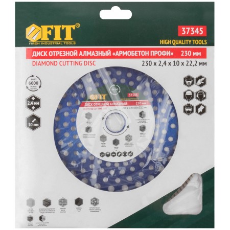 «Армобетон Профи». Универсальный. Для сухой и влажной резки бетона, кирпича, гранита, керамогранита, мрамора и камня. За счёт специально подобранных компонентов металлической связки, применения технологии горячего спекания и повышенной концентрации алмазов диск подходит для резки армированного бетона, арматуры и других металлических изделий. Высота алмазной режущей кромки 10 мм. Посадочный диаметр 22,2 мм. Предназначен для углошлифовальных машин. Материал: высокоуглеродистая инструментальная сталь, режущая кромка содержит порошок из технических алмазов.
