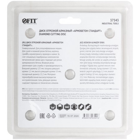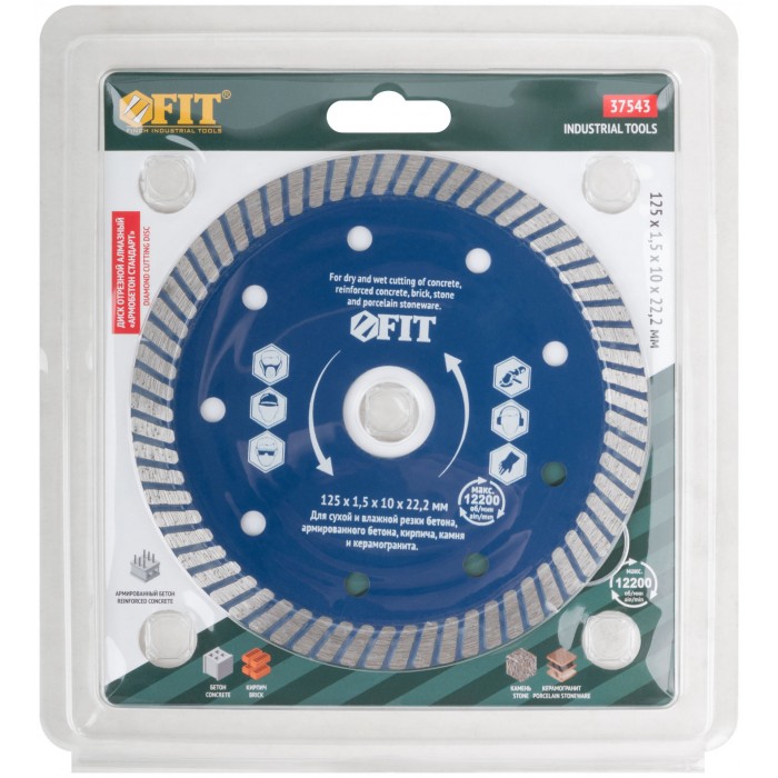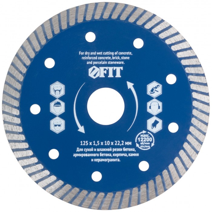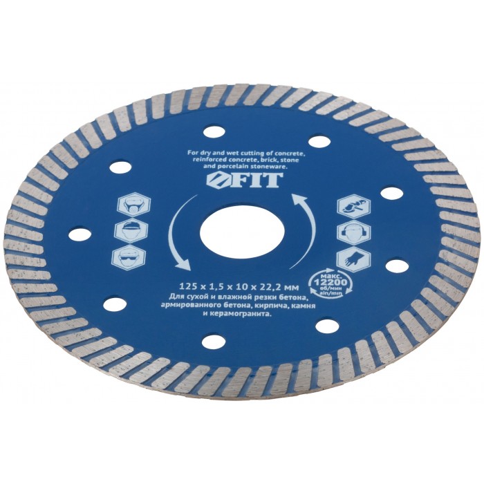 «Армобетон стандарт». Универсальный. Для сухой и влажной резки бетона, кирпича, гранита, керамогранита, мрамора и камня. За счёт специально подобранных компонентов металлической связки диск подходит для резки армированного бетона. Высота алмазной режущей кромки 10 мм. Посадочный диаметр 22,2 мм. Предназначен для углошлифовальных машин. Материал: высокоуглеродистая инструментальная сталь, режущая кромка содержит порошок из технических алмазов.