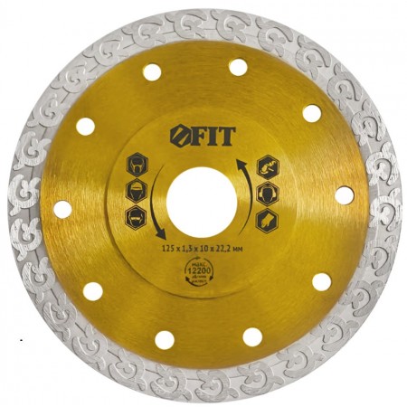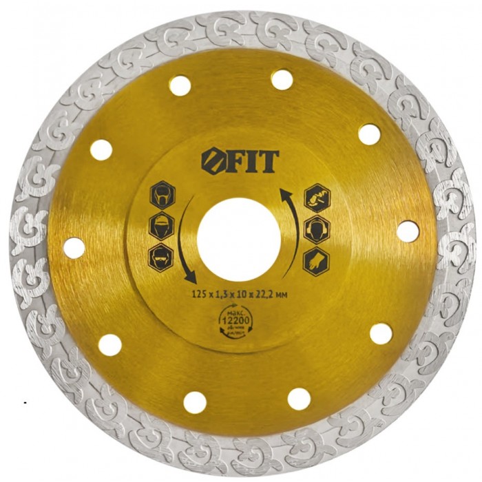 Универсальный, усиленный. Тонкий рез. Изоготовлен по технологии горячего спекания. Для сухой и влажной резки кафеля, керамогранита, бетона, кирпича, гранита, мрамора и камня. Высота алмазной режущей кромки 10 мм. Материал: инструментальная сталь, режущая кромка содержит порошок из технических алмазов. Упаковка: блистер.