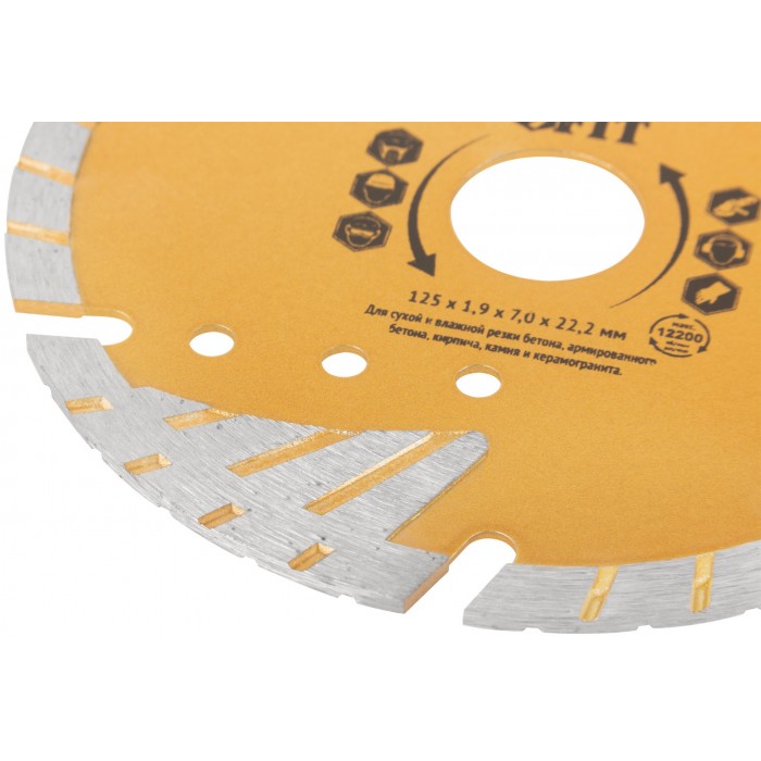 Диск отрезной алмазный универсальный с защитными секторами (сухая и влажная резка) 125х1,9х7х22,2 мм (37546)