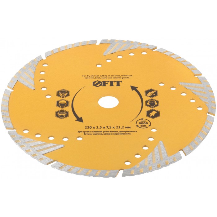 Диск отрезной алмазный универсальный с защитными секторами (сухая и влажная резка) 230х2,5х7,5х22,2 мм (37549)