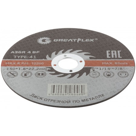 Диск отрезной по металлу Greatflex T41-150 х 1,8 х 22,2 мм, класс Master (50-41-007)
