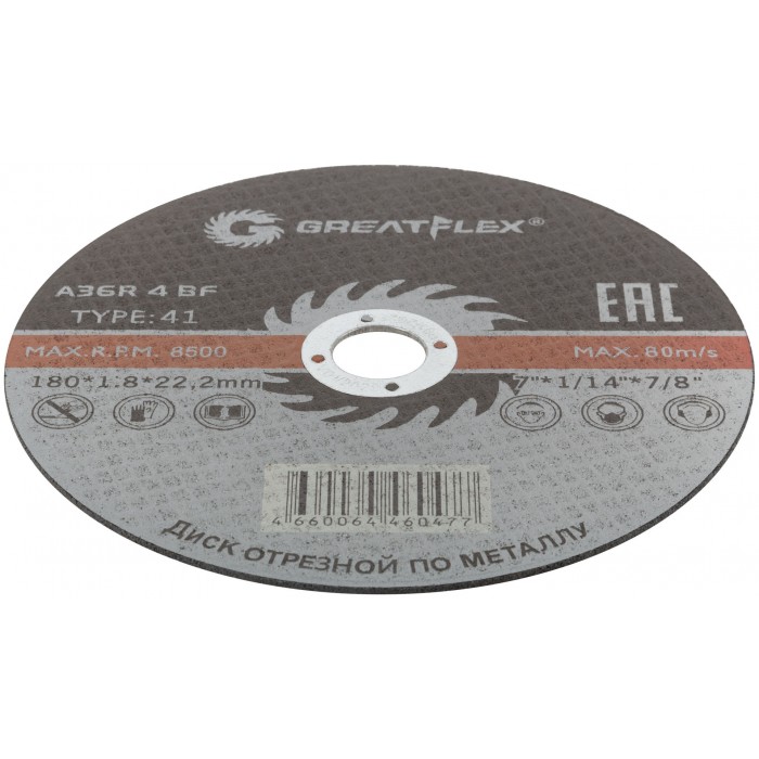 Диск отрезной по металлу Greatflex T41-180 х 1,8 х 22,2 мм, класс Master (50-41-008)