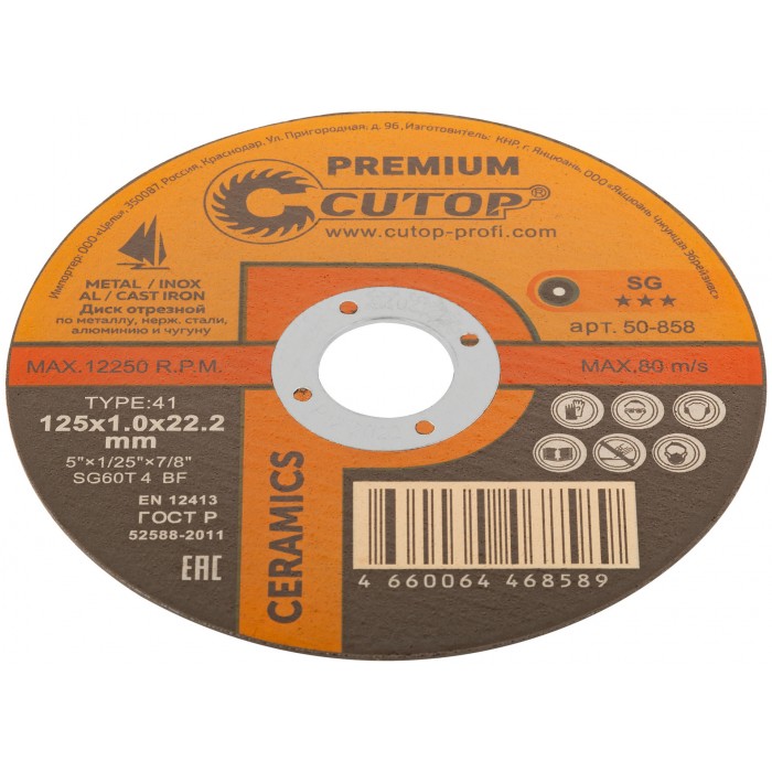 Диск отрезной по металлу, нерж.стали и чугуну Cutop CERAMICS, серия Premium, T41-125 х 1,0 х 22,2 мм (50-858)