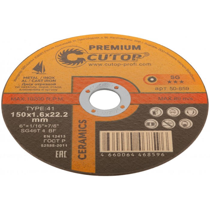Диск отрезной по металлу, нерж.стали и чугуну Cutop CERAMICS, серия Premium, T41-150 х 1,6 х 22,2 мм (50-859)