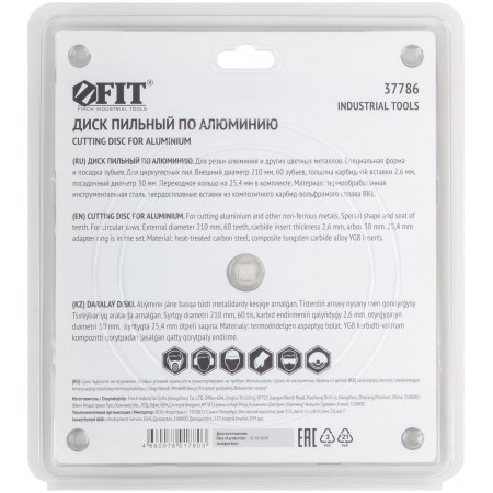 Диск пильный для циркулярных пил по алюминию 210 x 30/25,4 x 60T (37786)