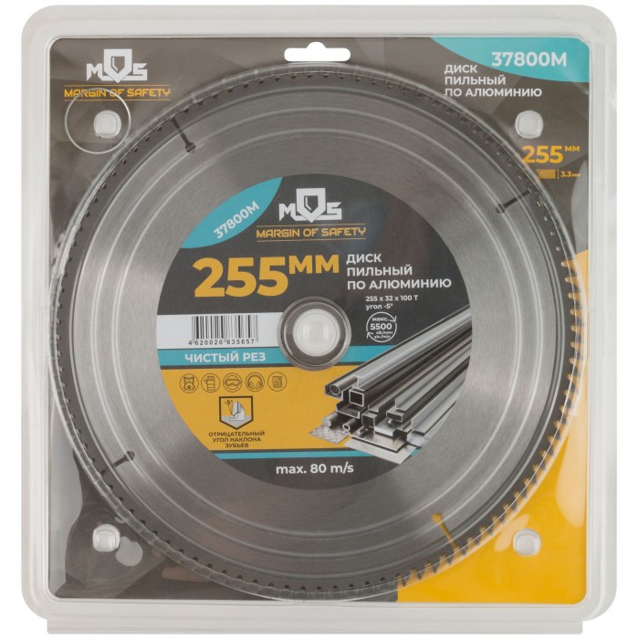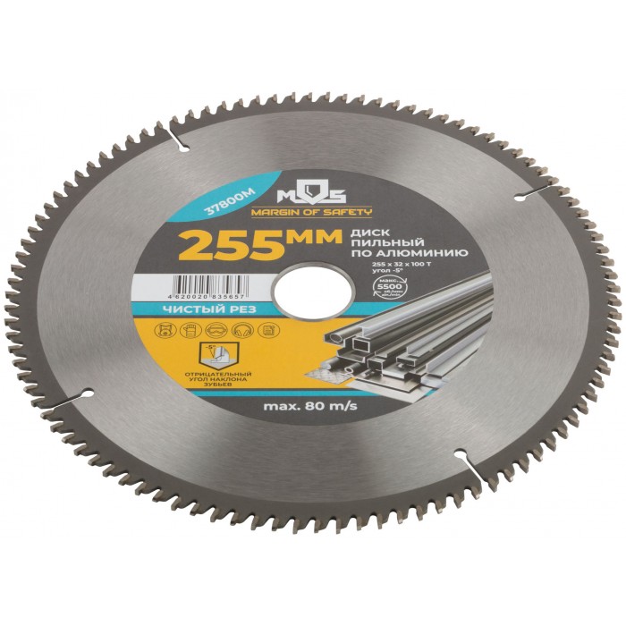 Диск пильный для циркулярных пил по алюминию 255 х 32 х 100T + кольцо 32/30 мм (37800М)