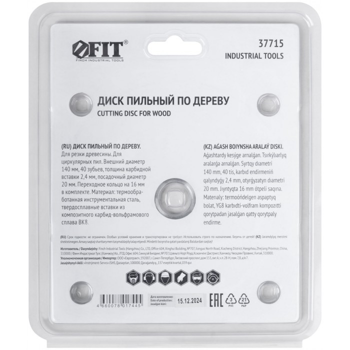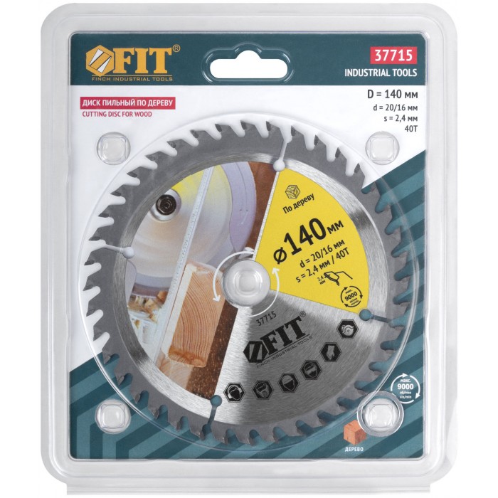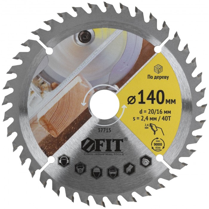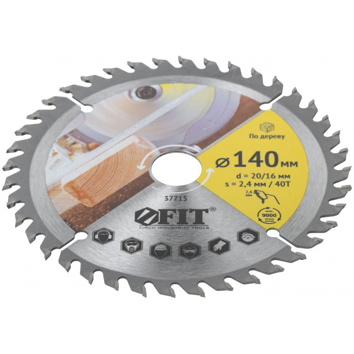 Диск пильный для циркулярных пил по дереву 140 х 20/16 х 40T (37715)