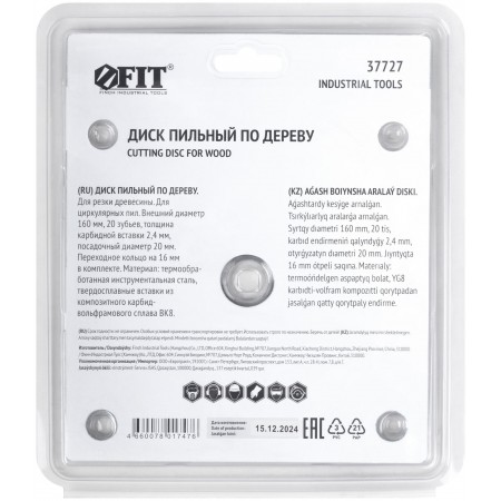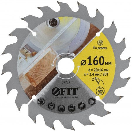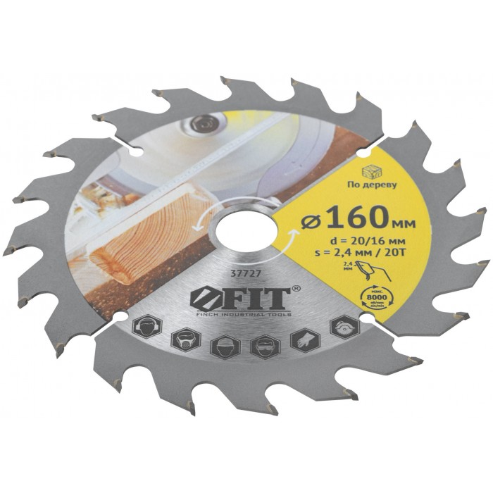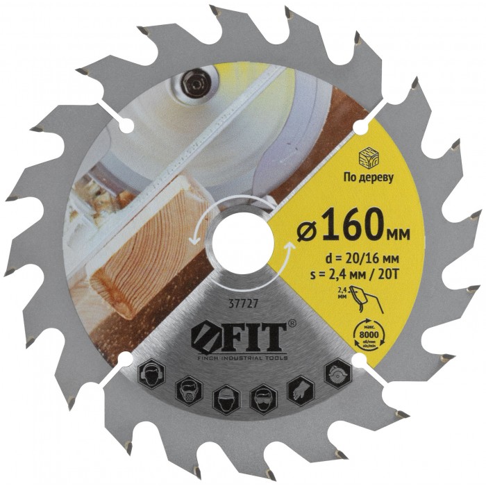 Диск пильный для циркулярных пил по дереву 160 х 20/16 х 20T (37727)