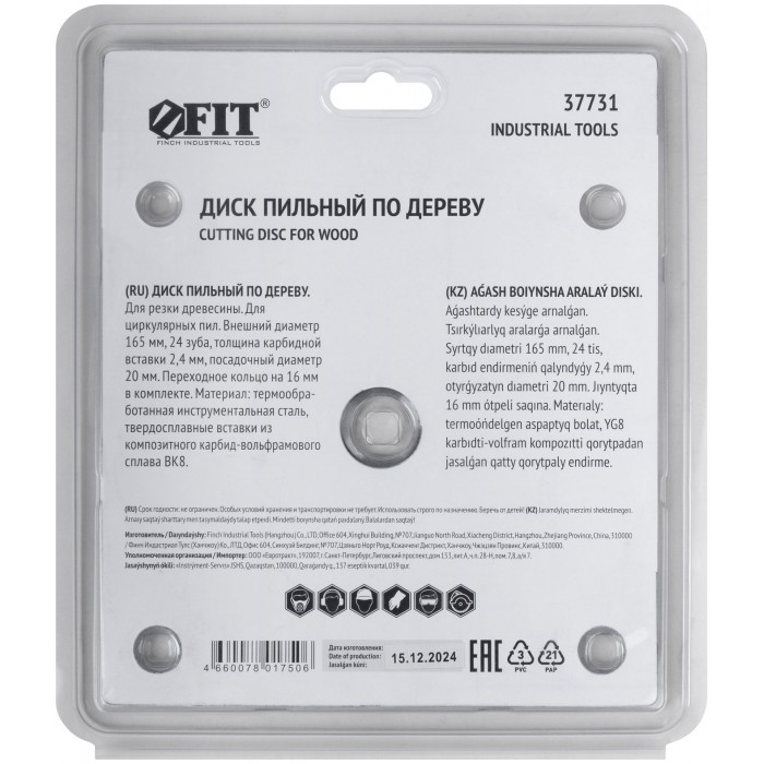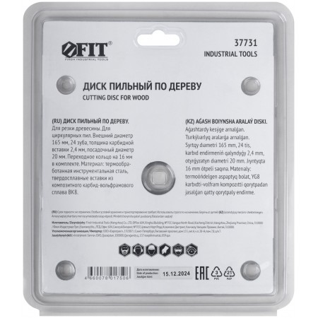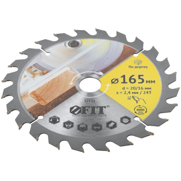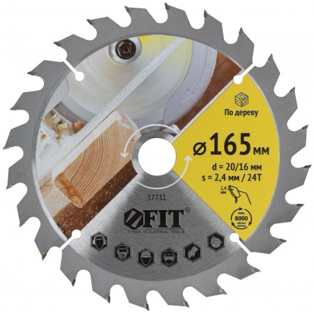 Диск пильный для циркулярных пил по дереву 165 х 20/16 х 24T (37731)