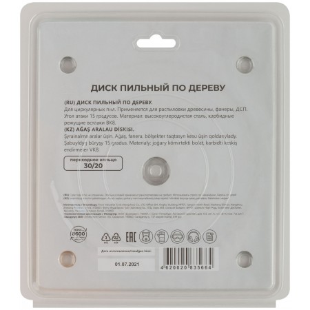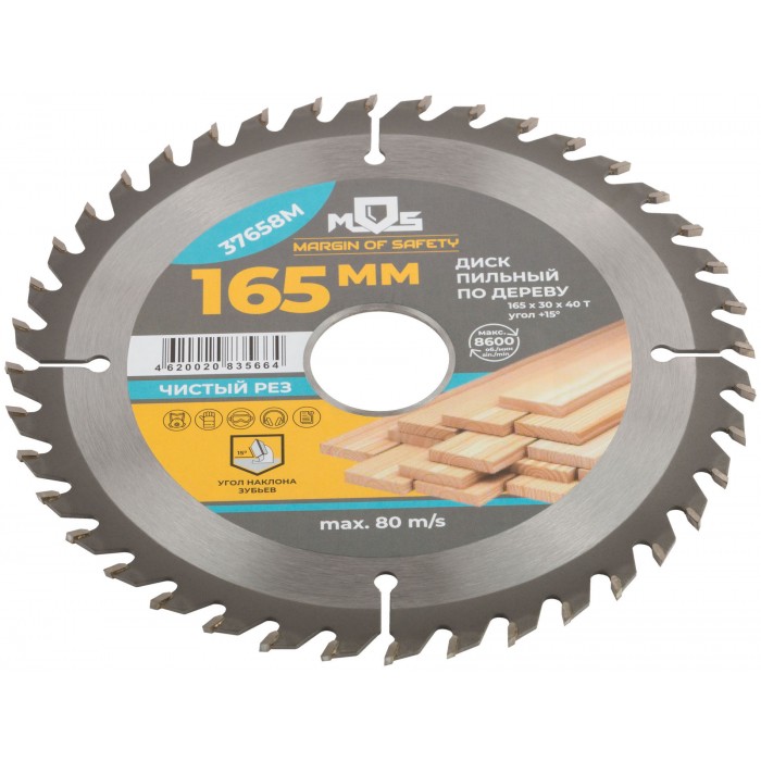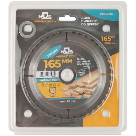 Диск пильный для циркулярных пил по дереву 165 х 30 х 40T + кольцо 30/20 мм (37658М)