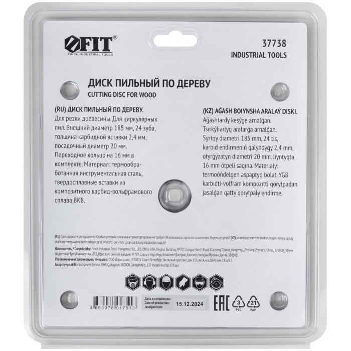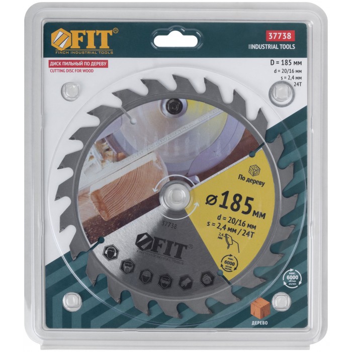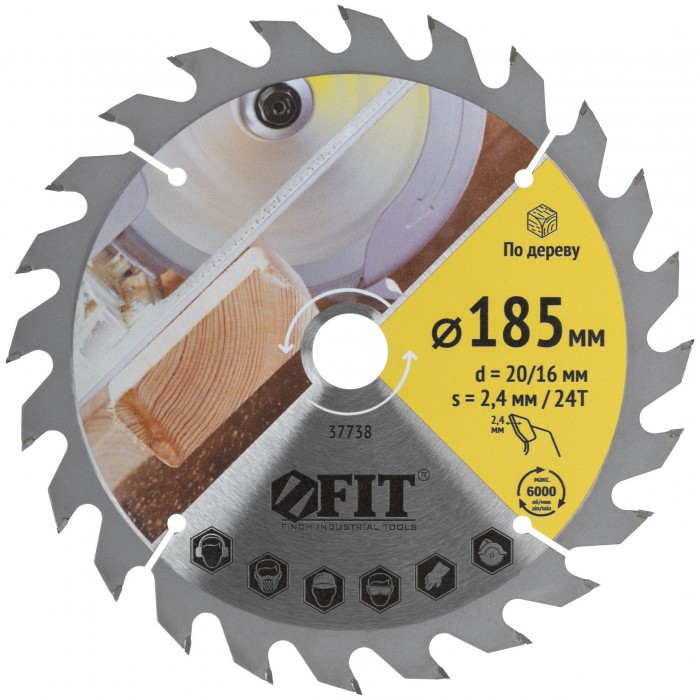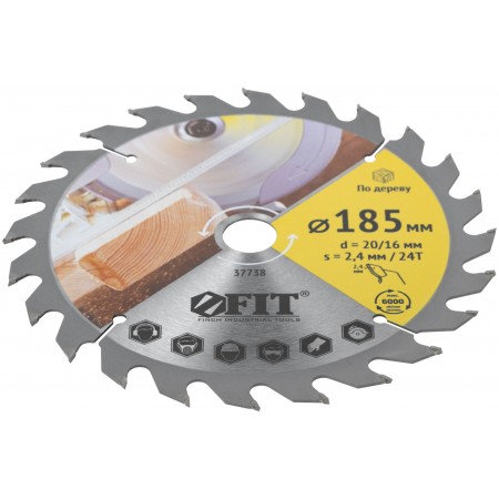 Диск пильный для циркулярных пил по дереву 185 х 20/16 х 24T (37738)