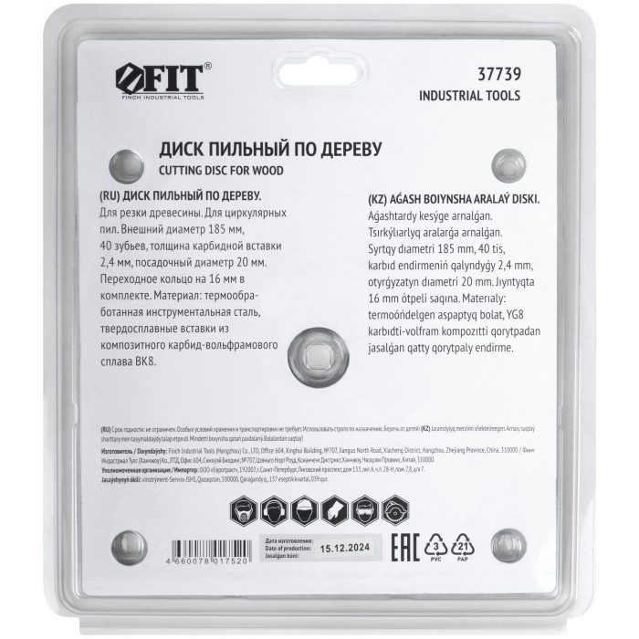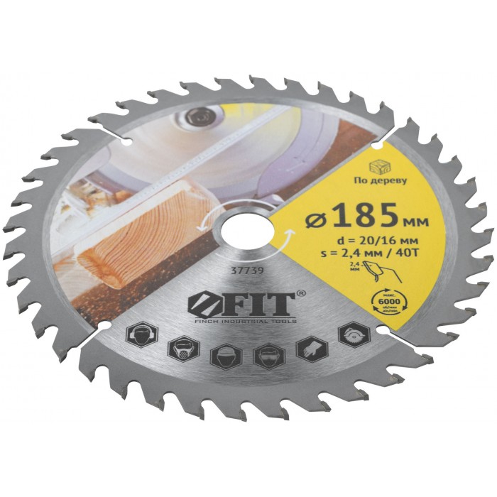 Диск пильный для циркулярных пил по дереву 185 х 20/16 х 40T (37739)