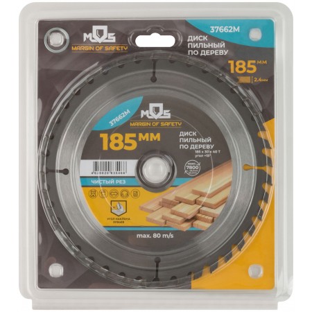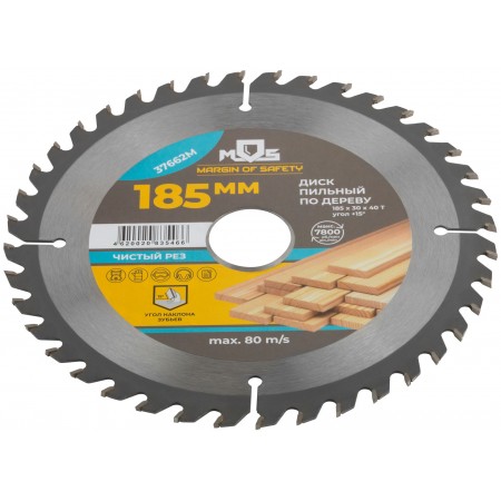 Диск пильный для циркулярных пил по дереву 185 х 30 х 40T + 2 кольца: 30/20 и 20/16 мм (37662М)