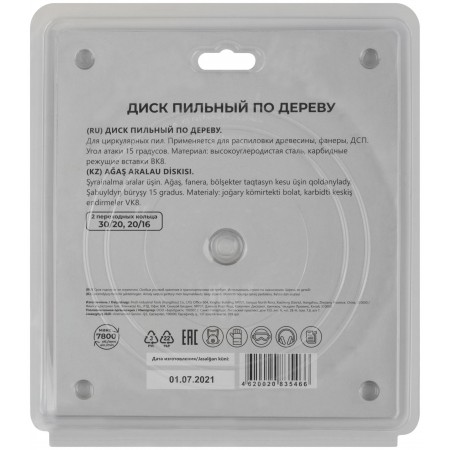 По дереву. Зубья из твердого сплава ВК8 (карбид вольфрама). Корпус из легированной высокоуглеродистой стали. Угол атаки +15°. Упаковка: блистер.