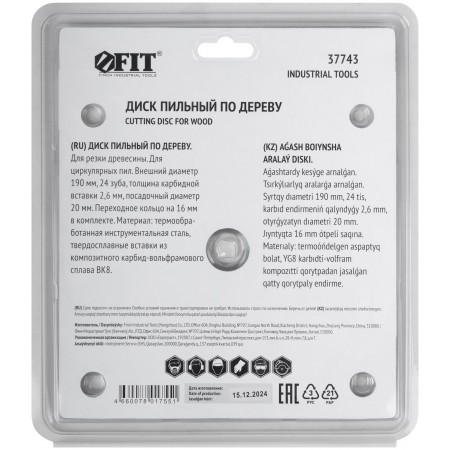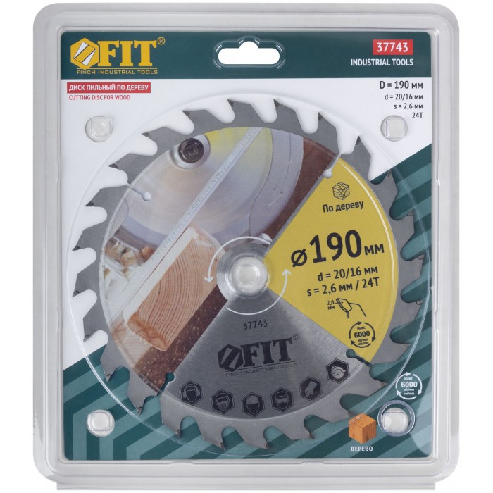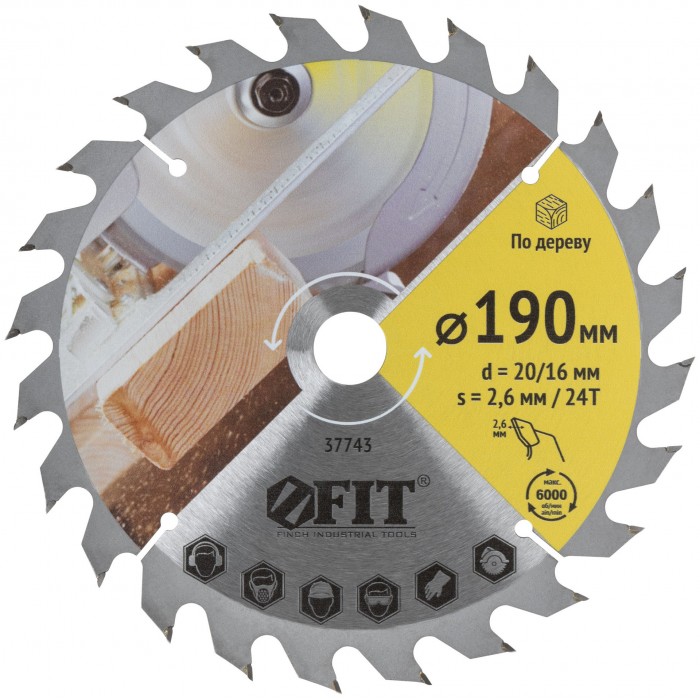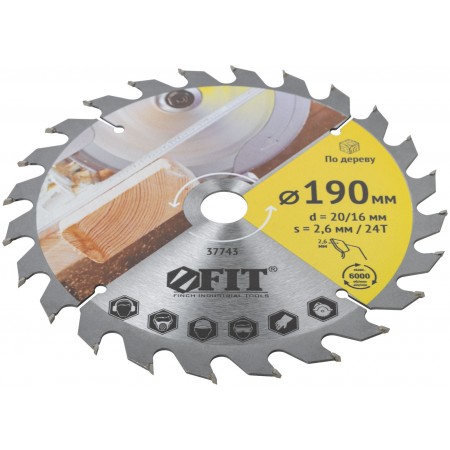 Диск пильный для циркулярных пил по дереву 190 х 20/16 х 24T (37743)