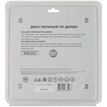 По дереву. Зубья из твердого сплава ВК8 (карбид вольфрама). Корпус из легированной высокоуглеродистой стали. Угол атаки +15°. Упаковка: блистер.