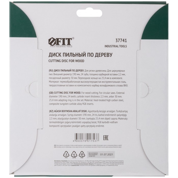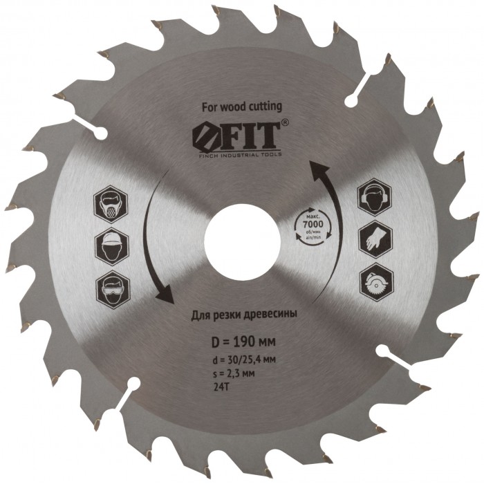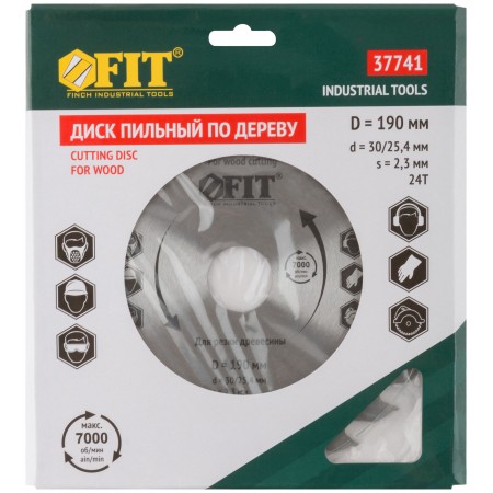Диск пильный для циркулярных пил по дереву 190 х 30/25,4 х 24T (37741)