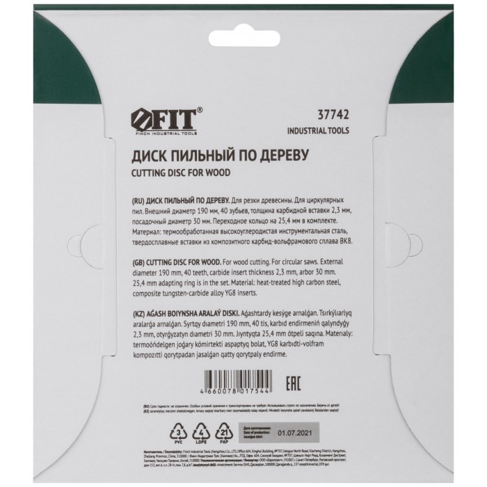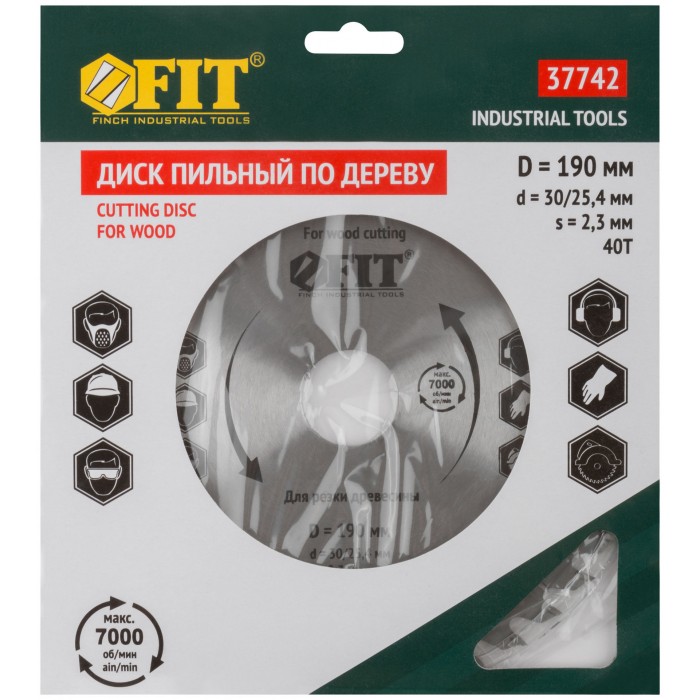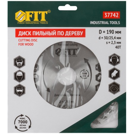 Диск пильный для циркулярных пил по дереву 190 х 30/25,4 х 40T (37742)
