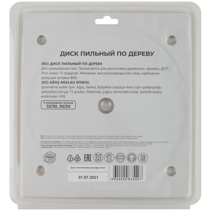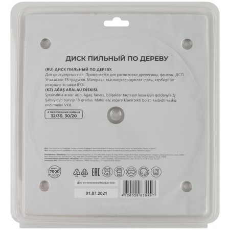 По дереву. Зубья из твердого сплава ВК8 (карбид вольфрама). Корпус из легированной высокоуглеродистой стали. Угол атаки +15°. Упаковка: блистер.