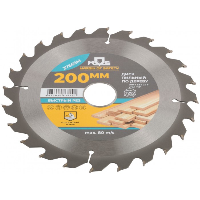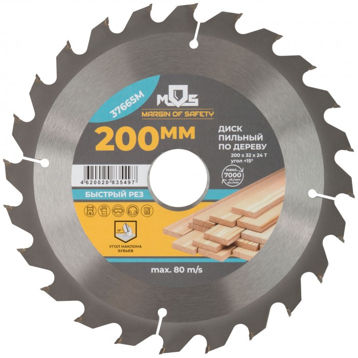 Диск пильный для циркулярных пил по дереву 200 х 32 х 24T + 2 кольца: 32/30 и 30/20 мм (37665М)