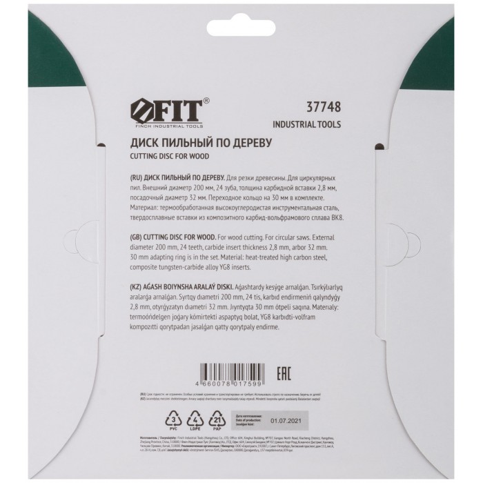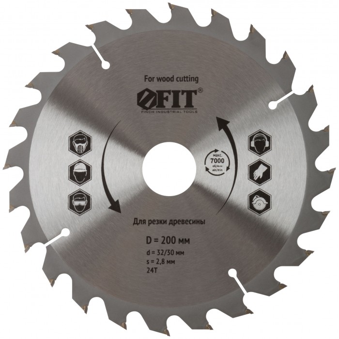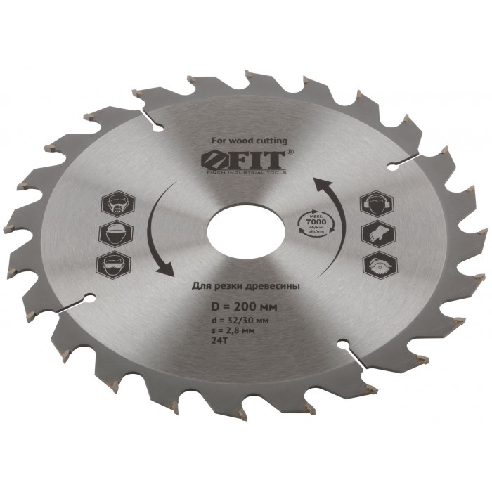 Диск пильный для циркулярных пил по дереву 200 х 32/30 х 24T (37748)