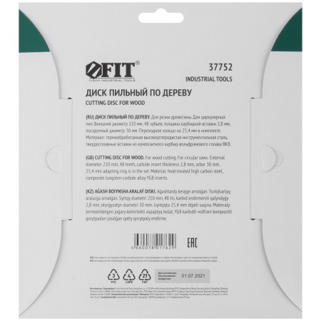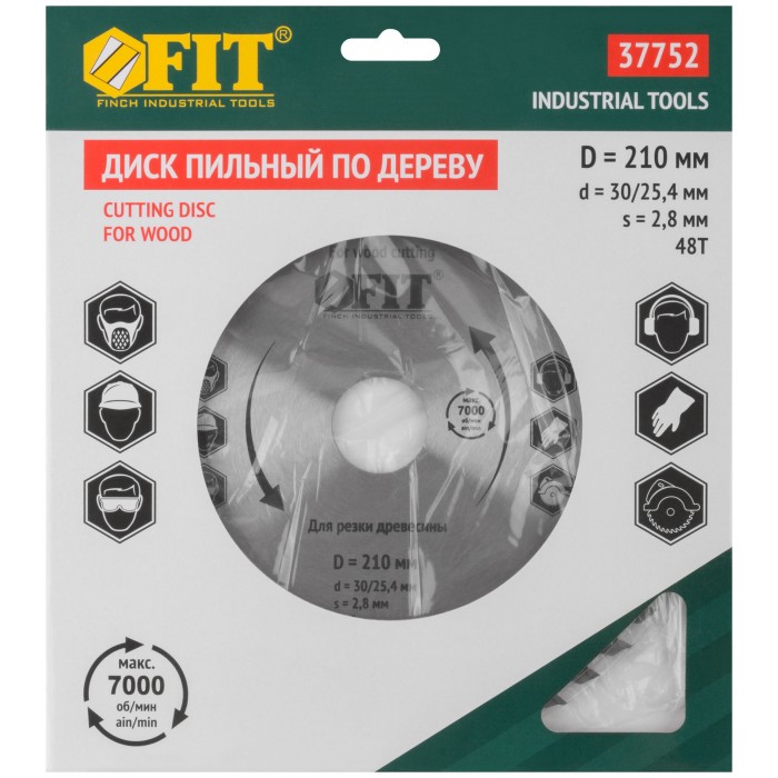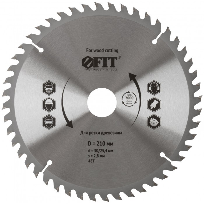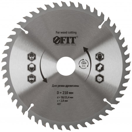 Диск пильный для циркулярных пил по дереву 210 х 30/25,4 х 48T (37752)