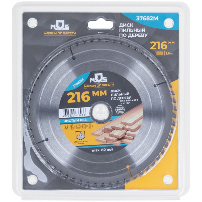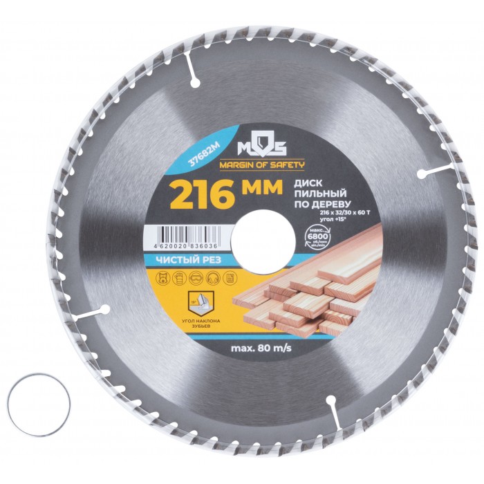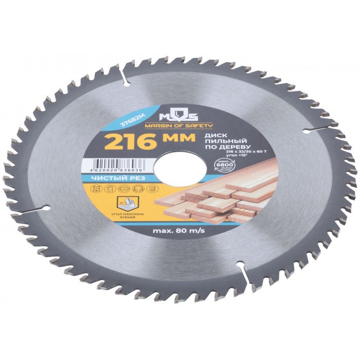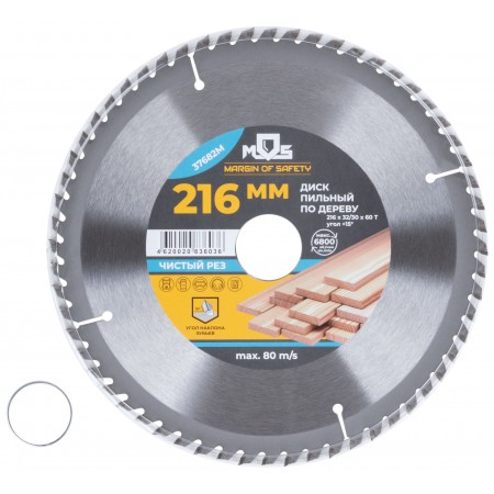 Диск пильный для циркулярных пил по дереву, 216 x 32 x 60T + кольцо 32/30 (37682М)
