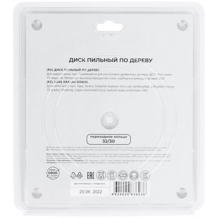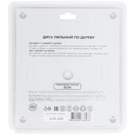 По дереву. Зубья из твердого сплава ВК8 (карбид вольфрама). Корпус из легированной высокоуглеродистой стали. Угол атаки +15°. Упаковка: блистер.