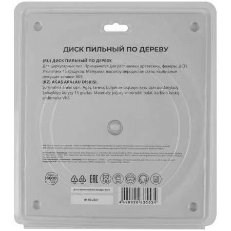 По дереву. Зубья из твердого сплава ВК8 (карбид вольфрама). Корпус из легированной высокоуглеродистой стали. Угол атаки +15°. Упаковка: блистер.