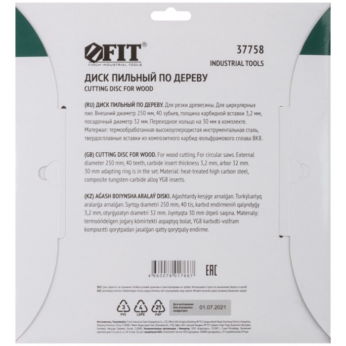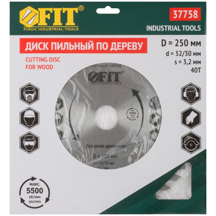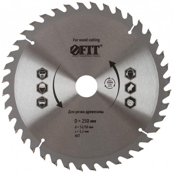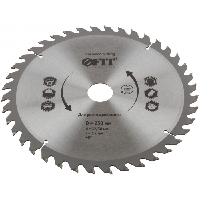 Диск пильный для циркулярных пил по дереву 250 х 32/30 х 40T (37758)