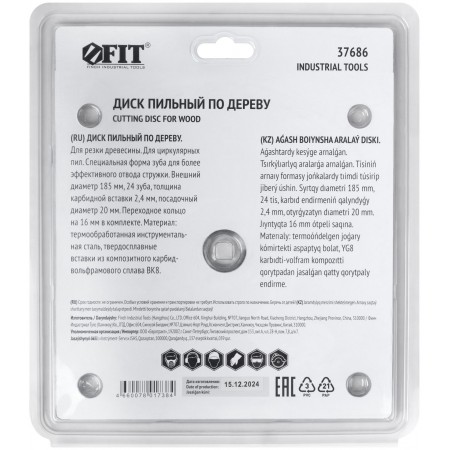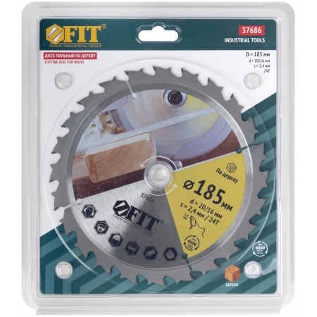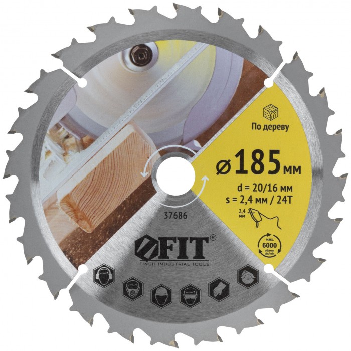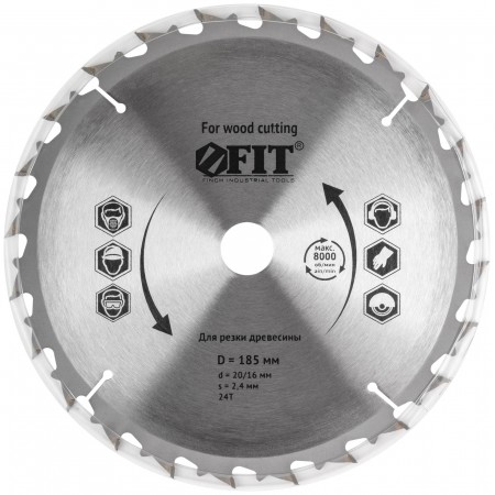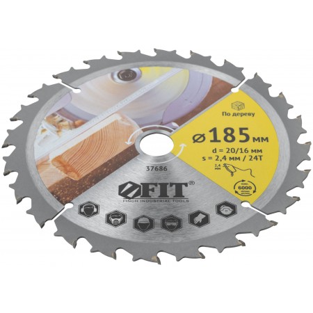 Диск пильный для циркулярных пил по дереву, спец. форма зуба 185 х 20/16 х 24Т (37686)