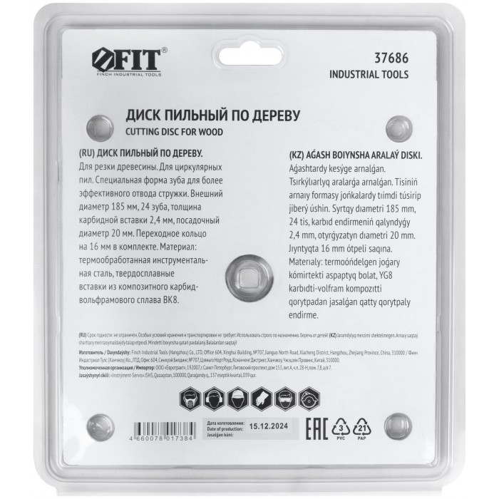 По дереву. Специальная форма зуба для улучшенного отвода стружки. Материал: высокоуглеродистая сталь, карбидные режущие вставки. Упаковка: картонный конверт.