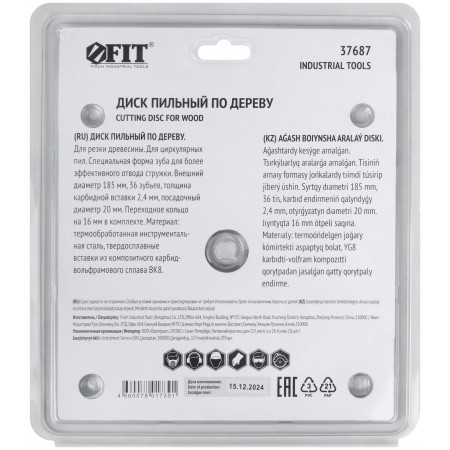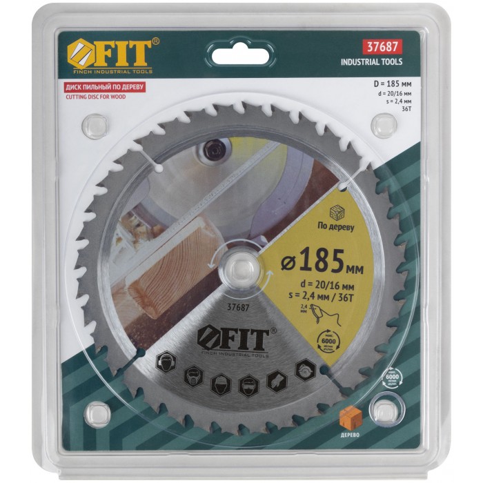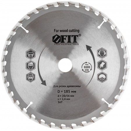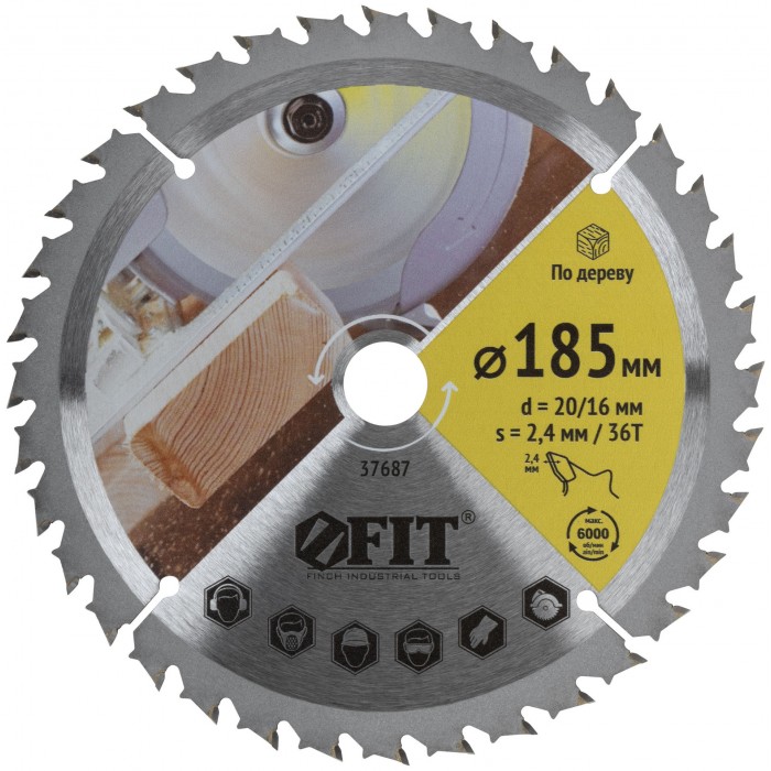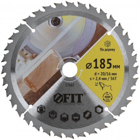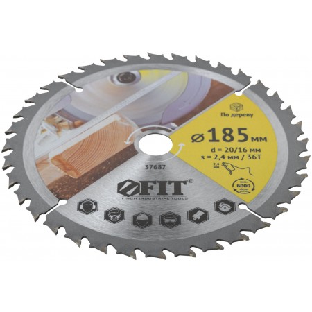 Диск пильный для циркулярных пил по дереву, спец. форма зуба 185 х 20/16 х 36Т (37687)