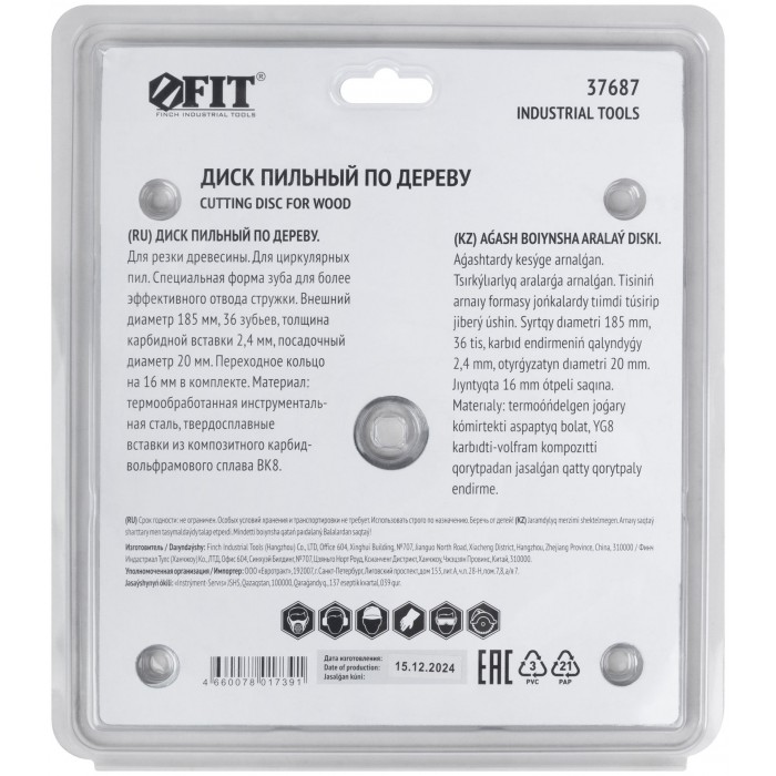 По дереву. Специальная форма зуба для улучшенного отвода стружки. Материал: высокоуглеродистая сталь, карбидные режущие вставки. Упаковка: картонный конверт.