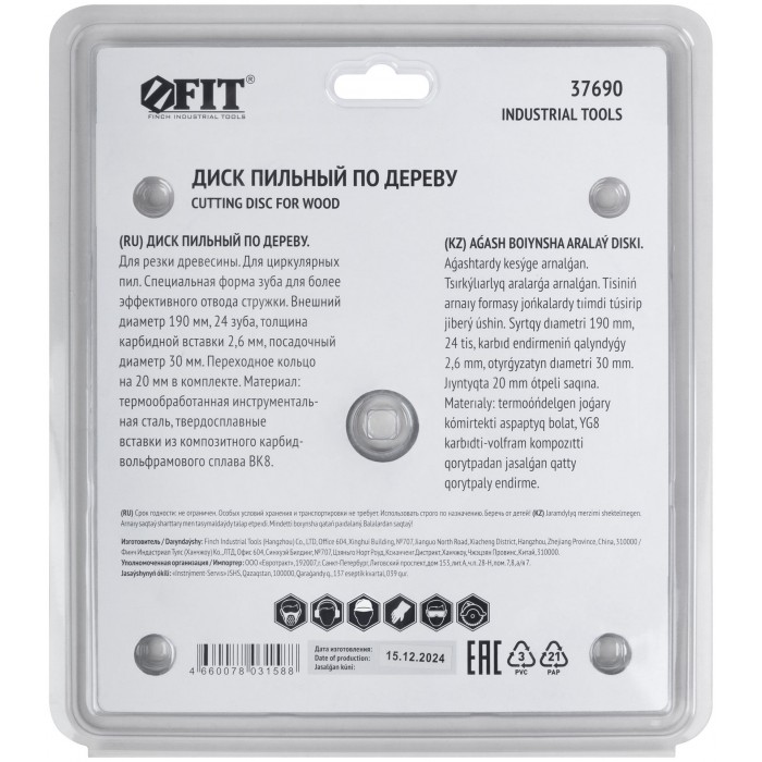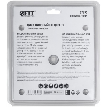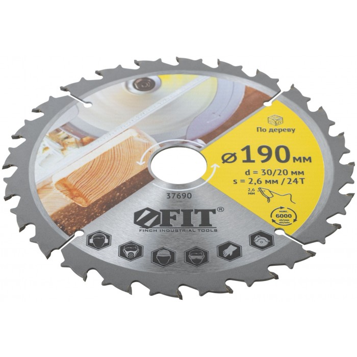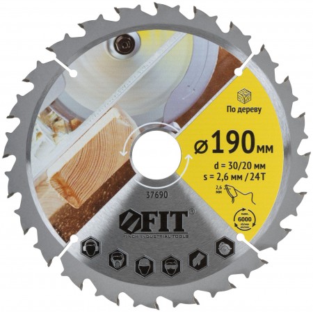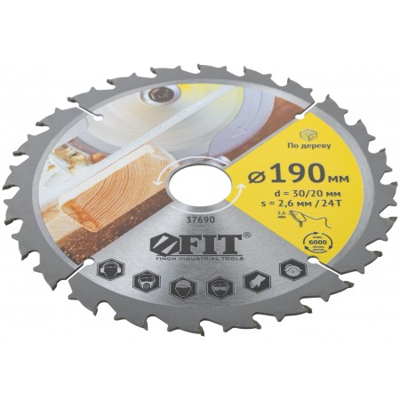 Диск пильный для циркулярных пил по дереву, спец. форма зуба 190 х 30/20 х 24Т (37690)