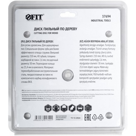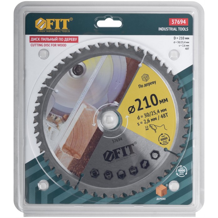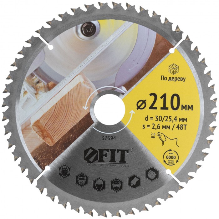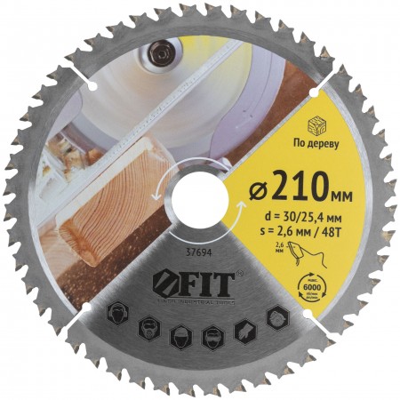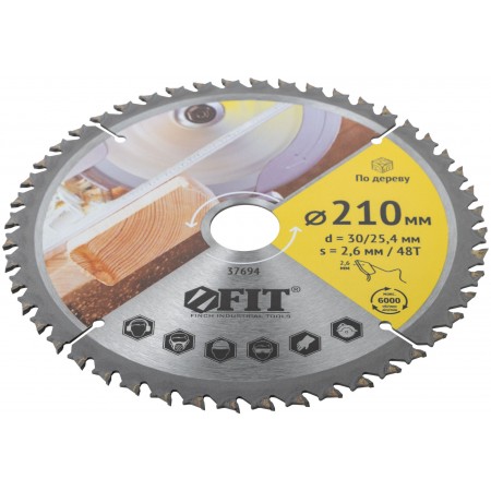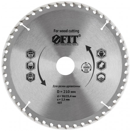 Диск пильный для циркулярных пил по дереву, спец. форма зуба 210 х 30/25,4 х 48Т (37694)